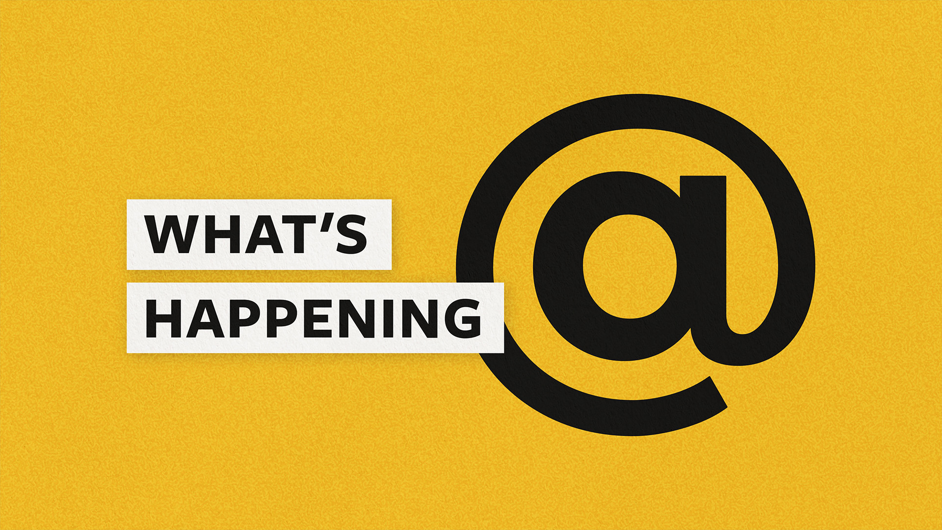 The branding for Meta's iternal weekly show What's Happening@ utilizes an approachable aesthetic, with a vibrant orange as the primary brand color. The main logo utilizes tight bold typography and playful use of the “atpersand”, these elements come together to reflect the show's welcoming and informative atmosphere. The accompanying title cards and lower thirds also incorporate a similar style and a unique palette per segment.